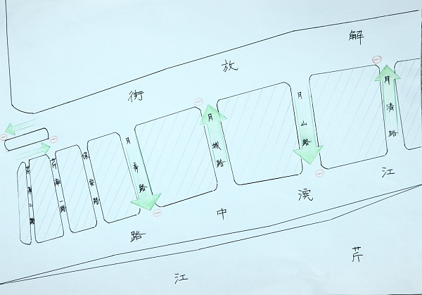 同日,记者在各路口已看到单行的标识标牌,具体实行路线为:月清路由东向西(江滨路往解放路方向,下同)通行,禁止由西往东(解放路往江滨路方向,下同)行驶;月山路由西向东通行,禁止由东往西行驶;月城路由东向西通行,禁止由西往东行驶;月秀路由西向东通行,禁止由东往西行驶。