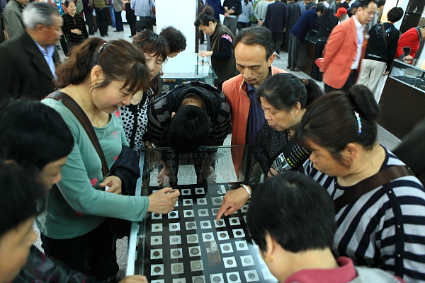 市民在观看古钱币
